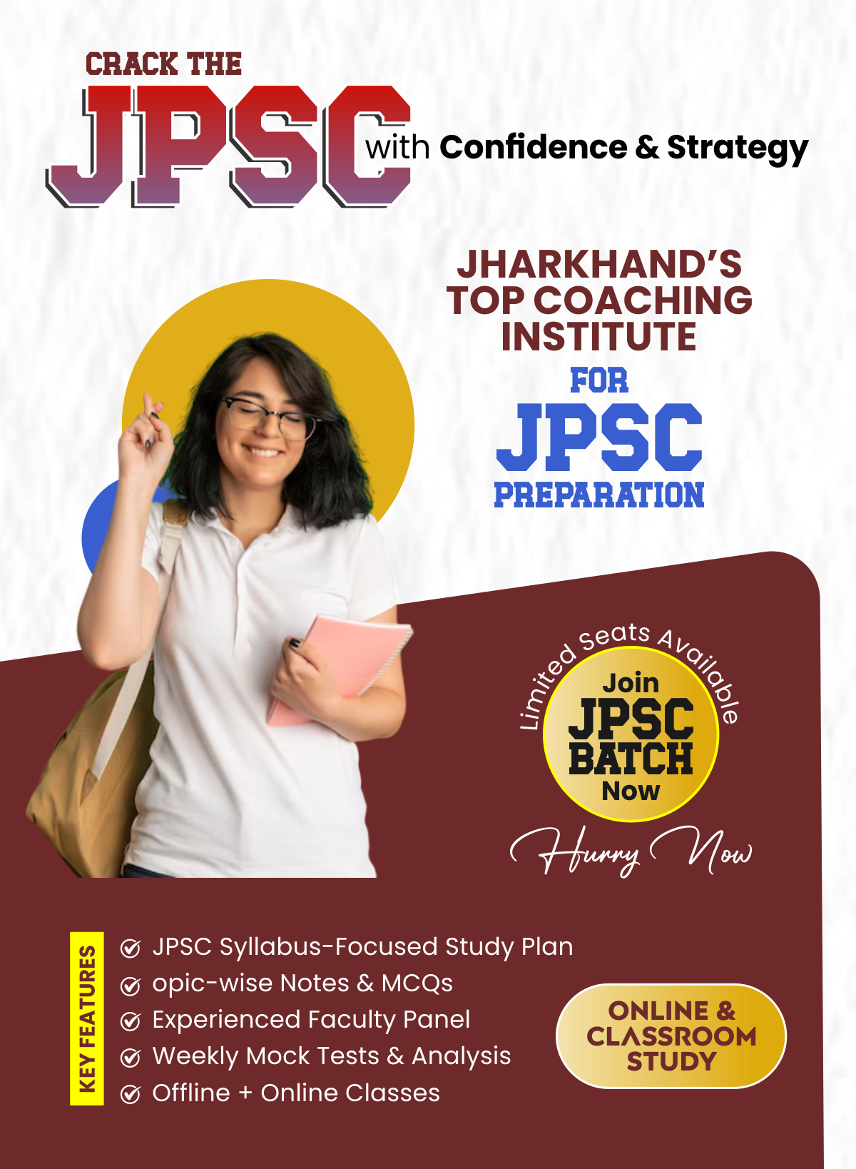 हम यूपीएससी (सिविल सेवा), जेपीएससी (झारखंड लोक सेवा आयोग) और बीपीएससी (बिहार लोक सेवा आयोग) की संपूर्ण तैयारी हेतु कार्यक्रम प्रदान करते हैं। हमारे पाठ्यक्रमों में लाइव कक्षाएं, टेस्ट सीरीज़ और व्यक्तिगत मार्गदर्शन शामिल हैं।